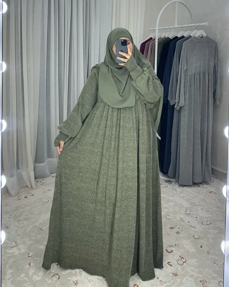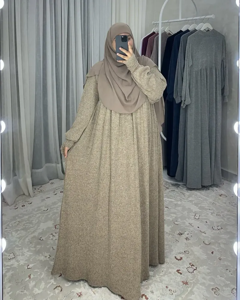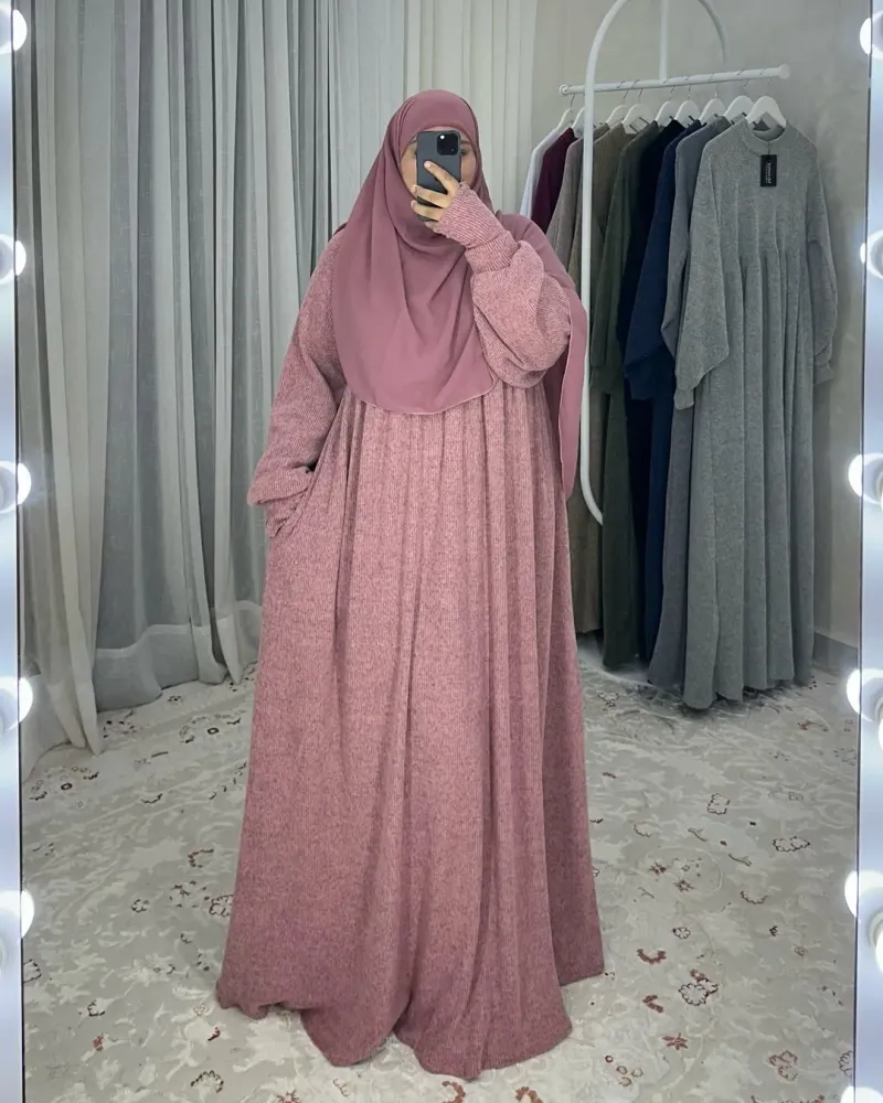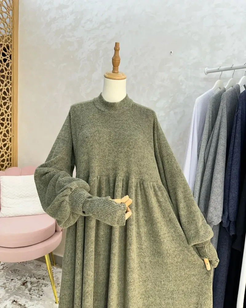 فستان غيمة بقماش شتوي مع جيوب وكذلك سواعد يد بنفس الثوب
