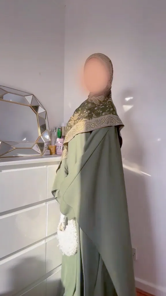 عباية باترفلاي ستوندار واسعة بلون أخضر أنيق، مصنوعة من قماش الكريب الناعم